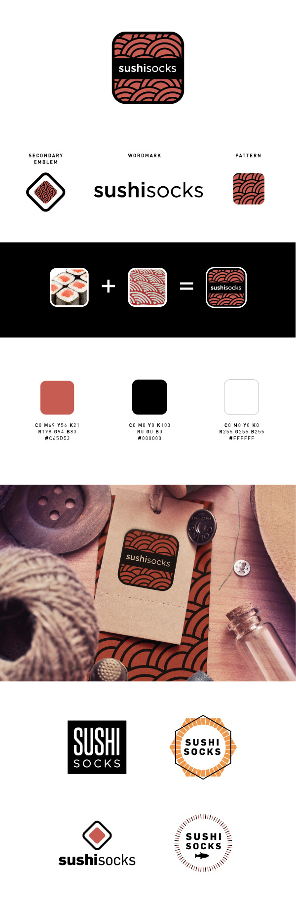 Branding for a company called Sushi Socks. They print photos of sushi on socks!